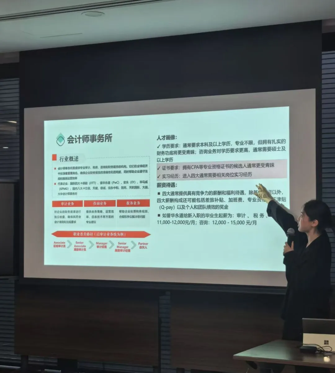 同时王女士也结合其丰富的财经行业从业经验,举例并强调CPA证书在财经行业的重要性,建议同学们尽早规划职业发展路径。