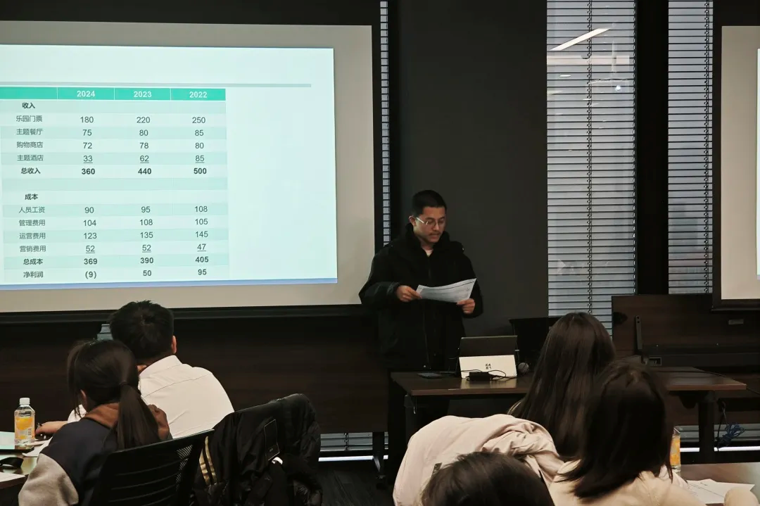 在汇报环节结束后,车车老师就各组同学的精彩表现进行点评,并为获胜小组颁发了德勤笔记本套装。车车老师从基础设施建设、人力资源管理、运营营销三个方面,以企业数字化的角度进行了深入分析,为案例分析环节画上了圆满的句号。