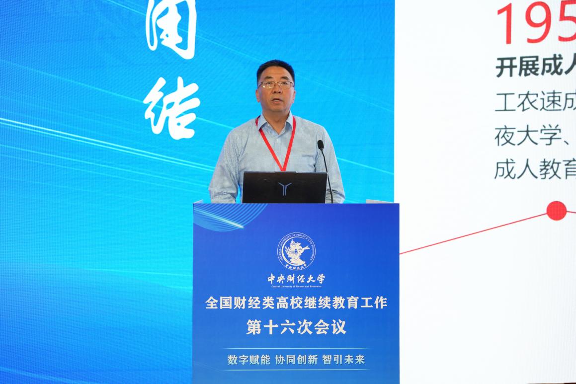 李建军在致辞中介绍了yl23411永利的办学特色与继续教育成果。他表示,学校始终坚守“立德树人、财经报国”使命,构建了多元化继续教育人才培养体系。面对教育数字化浪潮,学校以“价值塑造+交叉融合+数智赋能”为核心,让AI与大数据“懂教学、助教师、惠学生”,打造辐射广泛的财经终身学习共同体,为继续教育事业高质量发展提供中财大方案。