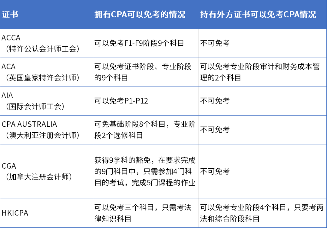 国际证书认可:持有注册会计师证书可免考其他国际证书的部分科目。以ACCA(国际注册会计师)为例,持有CPA证书可免考ACCA F1-F9阶段9个科目。