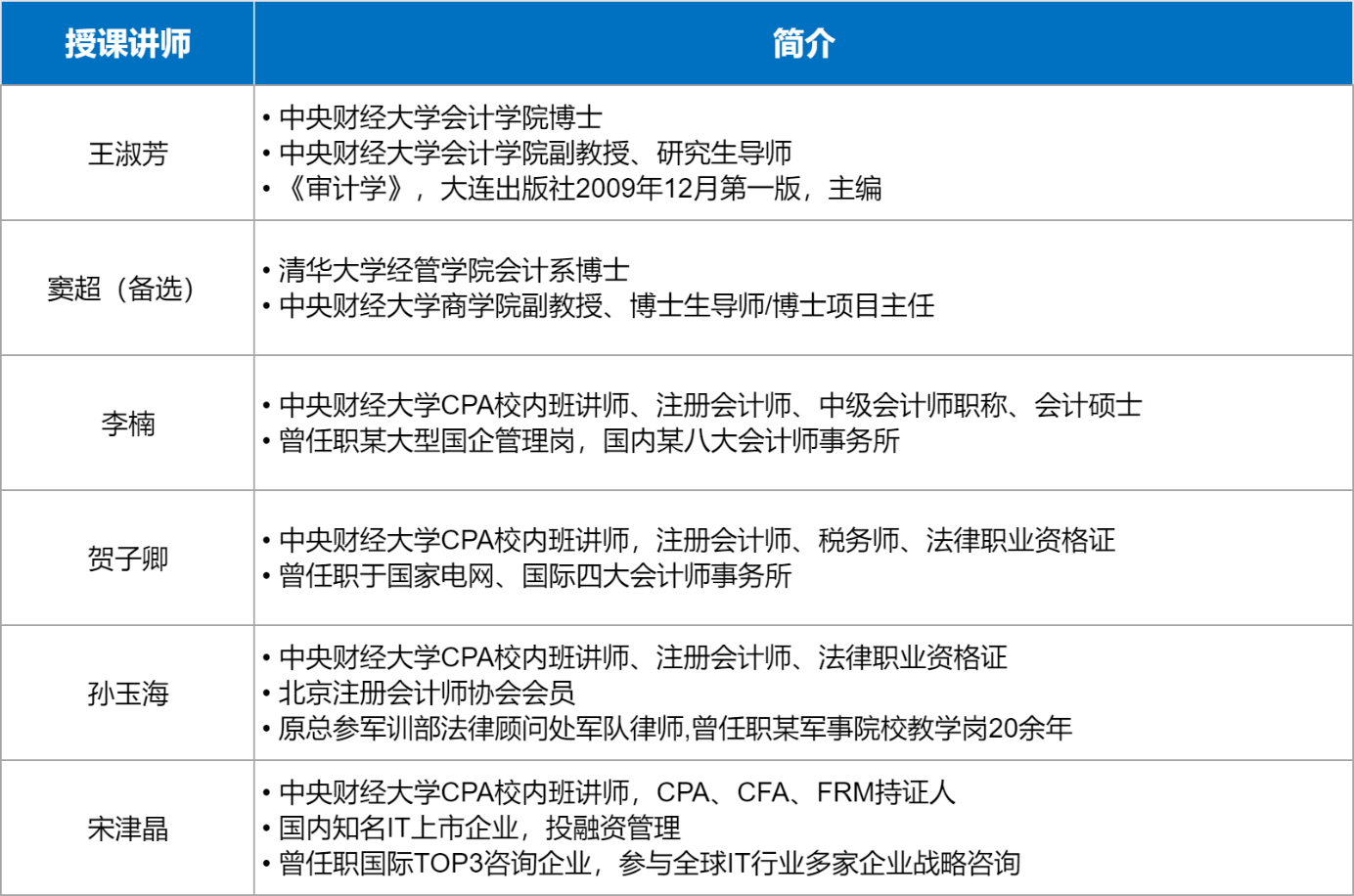 为CPA校内班配备高水平、高质量授课师资,所有授课讲师均具备CPA证书和多年教学经验。90%讲师具备研究生及以上学历,并兼具实务工作经验。