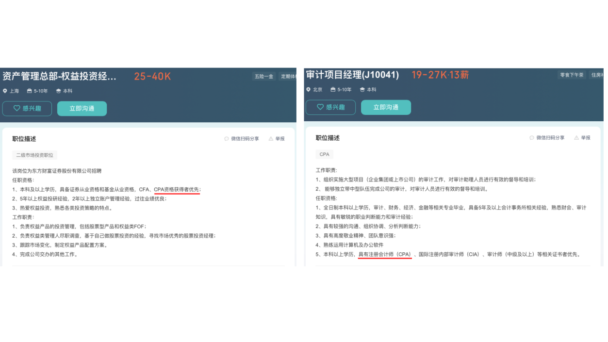 图 3东方财富证券(左)和天职国际会计师事务所(右)招聘信息