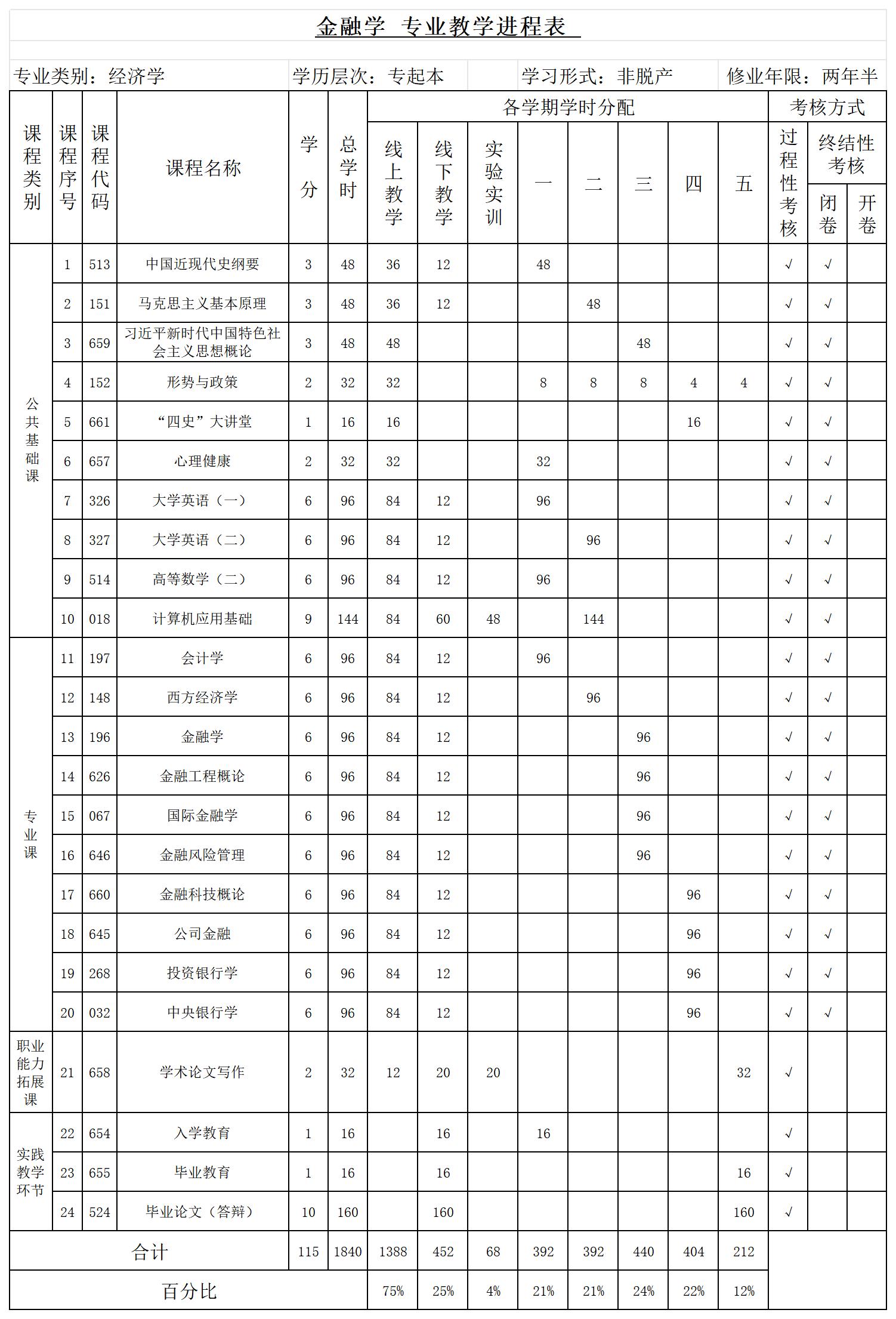 专科起点升本科金融学专业培养方案