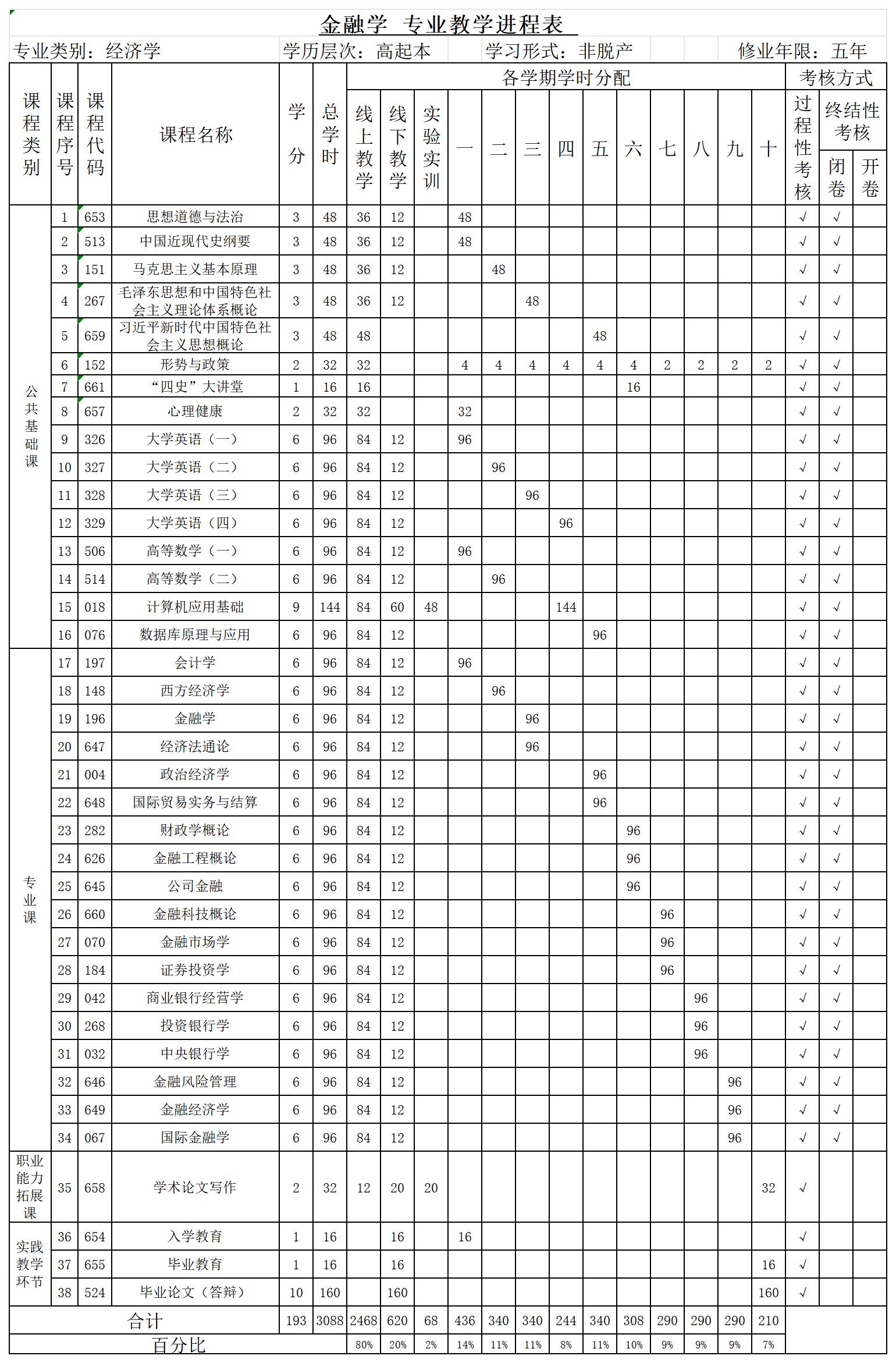 高中起点升本科金融学专业培养方案