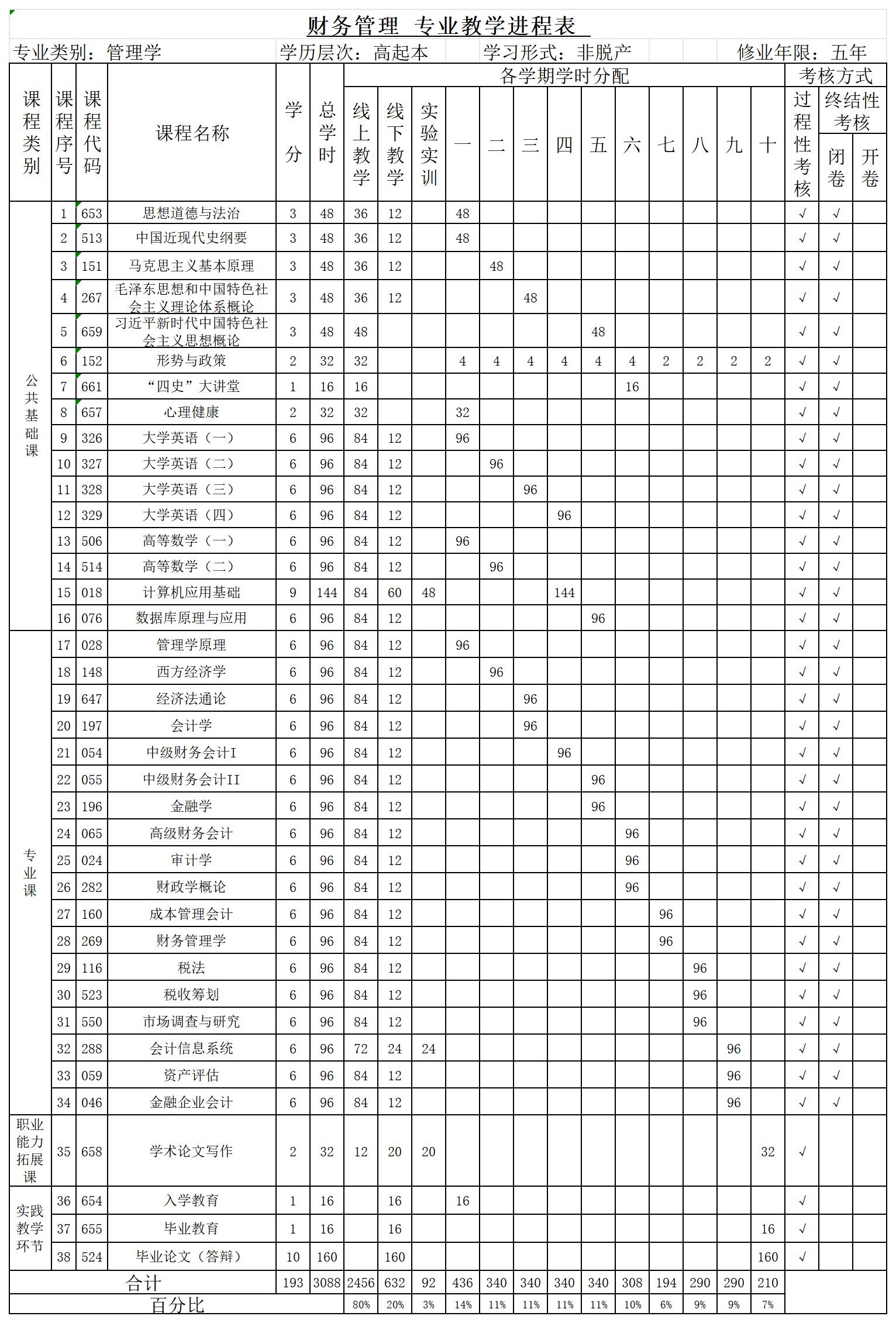 高中起点升本科财务管理专业培养方案